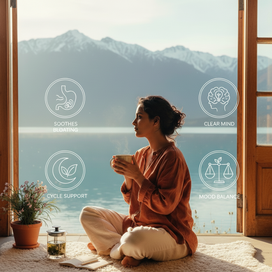 Hormonal balance, mood support, and relief from cycle discomfort - naturally. Infused with essential botanicals to help you feel at ease.